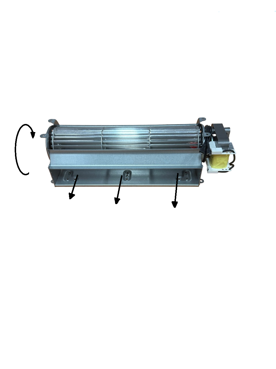 Вентилятор стоит креплениями на стол,двигатель с правой стороны, барабан крутиться от себя и воздух выдувает на себя.
